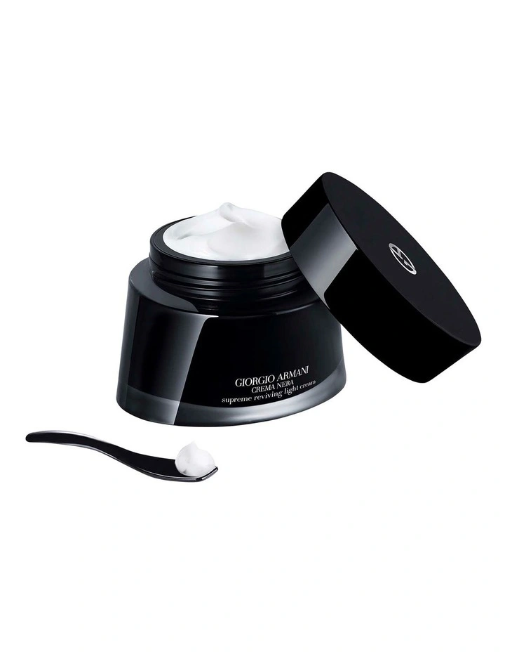 The powerful Crema Nera Supreme Reviving Light Cream by Giorgio Armani is concentrated in Reviscentalis to provide 24-hour moisture. Day after day, skin’s appearance is refreshed, more luminous and incredibly supple.