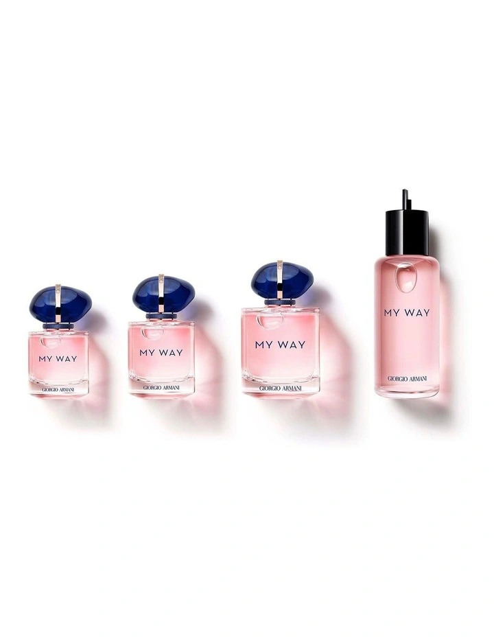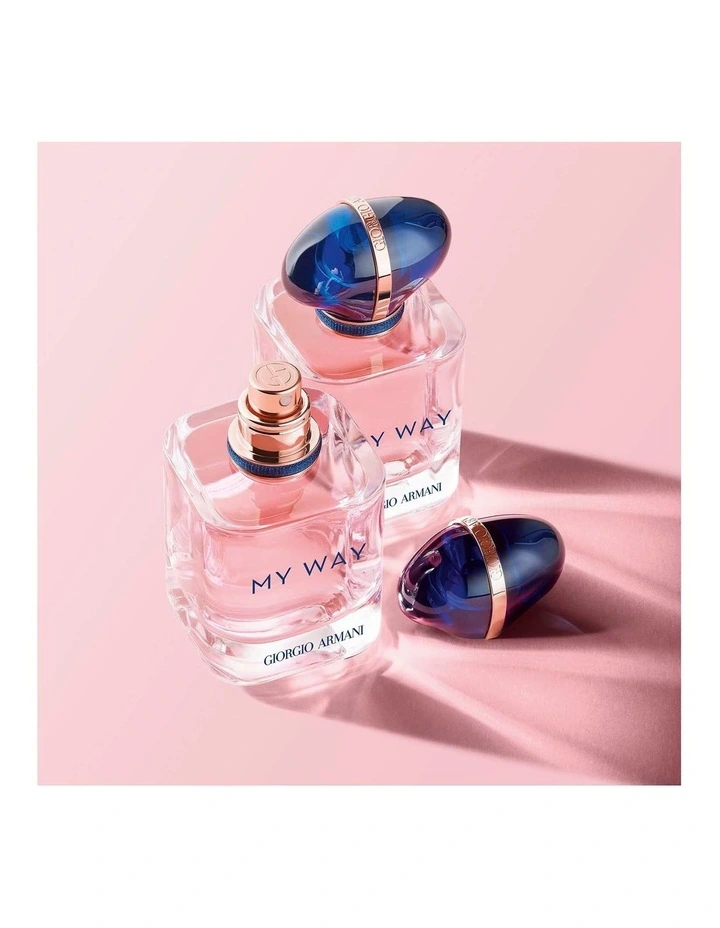 The blue and gold cap is a metaphor of the world. The blue is the universal color that unites all of us. It is englobed by a golden ring, stamped with the Giorgio Armani signature, a symbol of a unique path that is illuminated by every encounter along the way. This luxurious fragrance is refillable.
