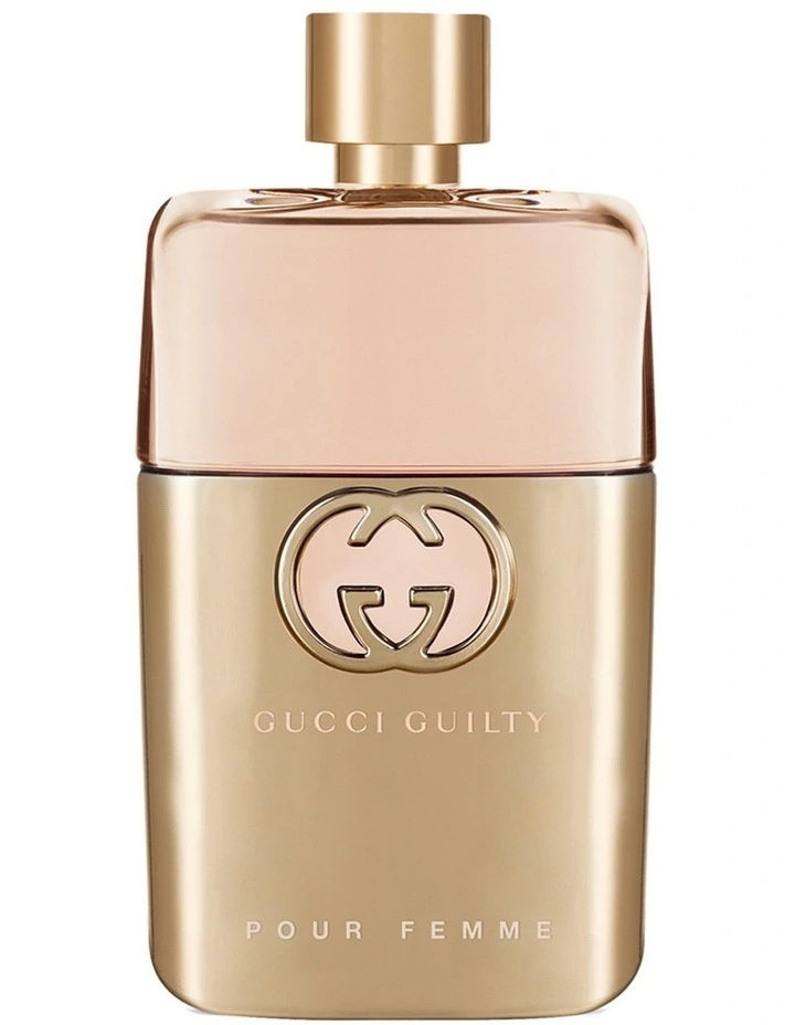 The new chapter of Gucci Guilty signature fragrances revels in the notion of women who are truly liberated. A modern declaration of self-expression and fearlessness burns brightly in the new powerful statement #ForeverGuilty. Blended for the new revolution, the Gucci Guilty pour femme scent is reborn, an Oriental Floral that brings richness and nobility to the original eau de toilette. Superior floral notes and enhanced natural fragrances flourish into a strong and refined eau de parfum. The perfume is intensified, with a higher perfume concentrated than the classic eau de toilette, radiating with commanding ingredients Mandora, Pink Pepper, Lilac and Patchouli. Opening in the mood of the scents message, a top note experience is redolent with the citrus notes of Mandoraa fruit found in the Mediterranean island of Cyprus, smoothed out with natural Bergamot and Pink Pepper. The heart defines the scents new complexity. Lilac is contrasted with rosy and violet notes and layered with Geranium Oil to create a nuanced and individual floral blend. Defining the scent: a deep natural duet of Patchouli Oils; Patchouli Coeur and Patchouli oil Micro-Distillation combined with Ambery notes, which leave an enduring silagethe time the perfumes fragrance lingers in the air when worn.