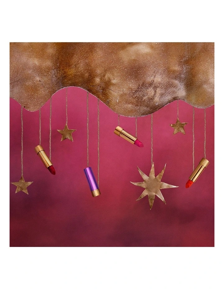 Delivering vivid and vibrant colour with one swipe, the glittery formula is coated with iridescent and sparkling pearls to create a velvety-looking shimmering bullet, while the formula is infused with a combination of different types of glitter to create a multi-dimensional sparkly, lustrous layer of intense colour on the lips.